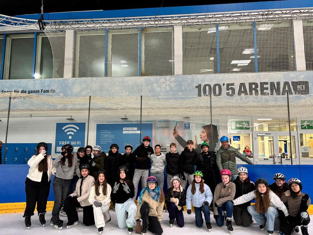 Am 22.1. besuchte unsere 7a die Eissporthalle in Aachen. Frau Decken, Herr Sohrab und Herr Dr. Fronhöfer passten auf. Und unser im Schlittschuhlaufen versierter Schuldirektor zeigte der Klasse, wie man sich auf dem Eis am besten bewegt. Der Spaß kam sicherlich nicht zu kurz!